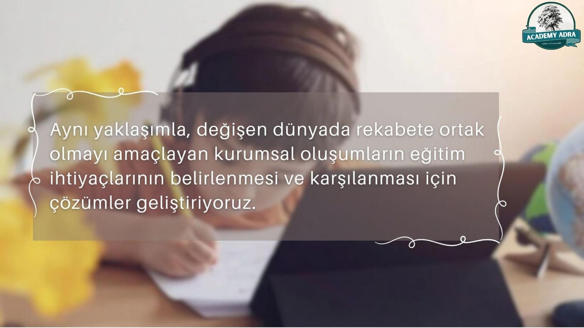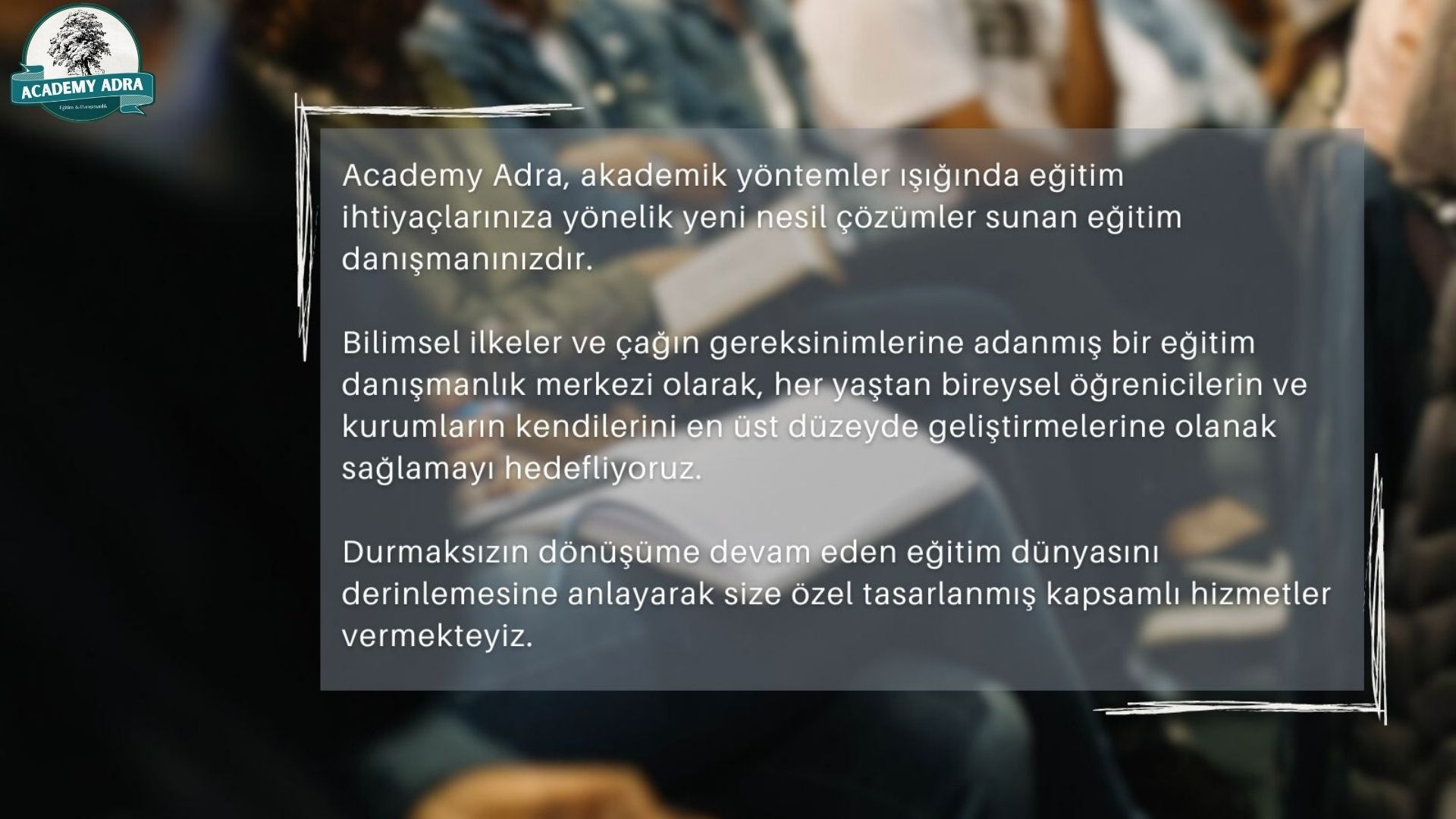 Academy Adra olarak "Okul İçin Değil, Hayat İçin Öğreniyoruz! " mottosu ışığında bireylerin ve kurumların akademi ve iş dünyasında ihtiyaç duydukları yenilikçi araçları sunmayı amaçlamaktayız.